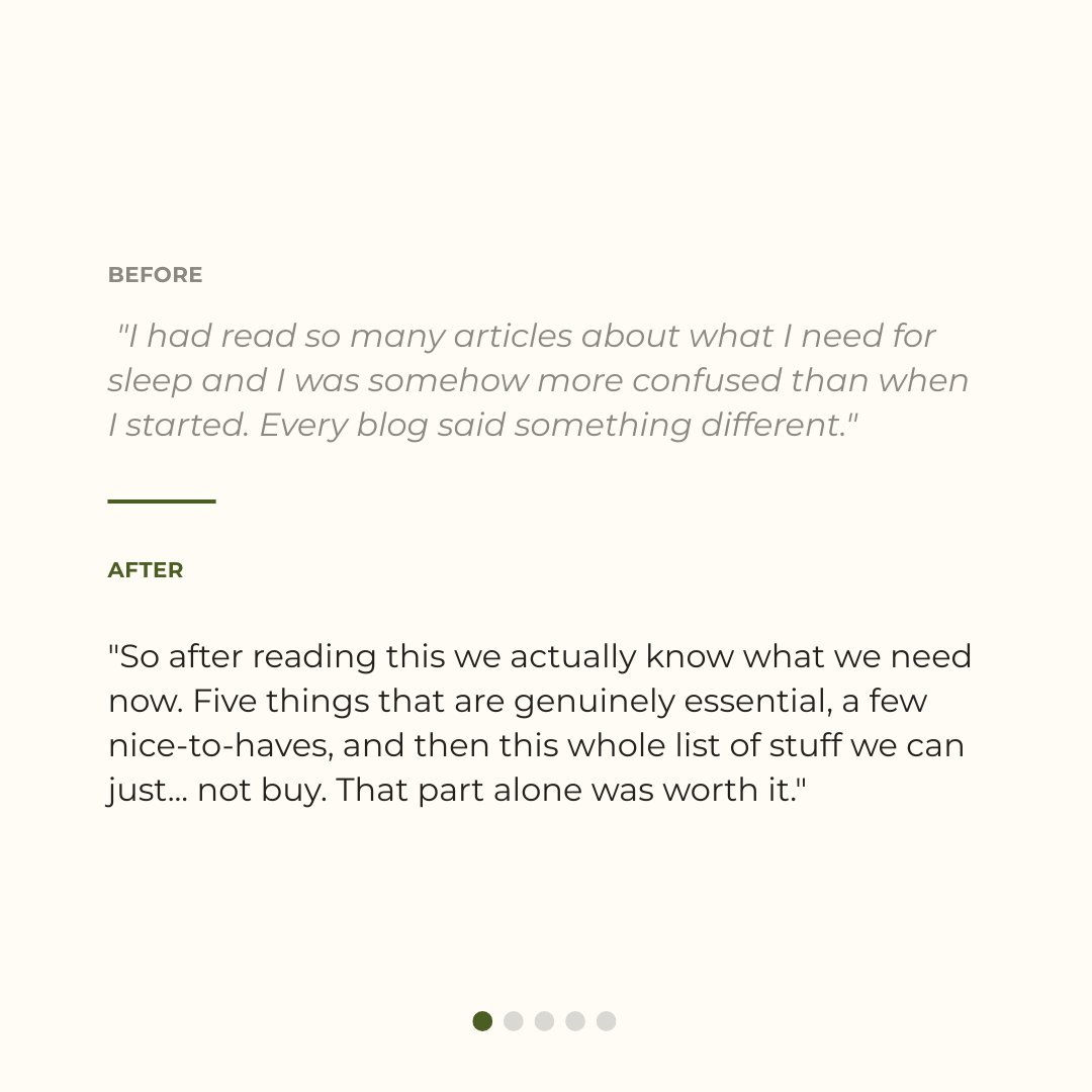 No. This is more than a list. We show you a way to think about sleep setup; what matters, what doesn't, and how to make decisions that work for your situation. You'll understand why certain features matter, not just what to buy.
