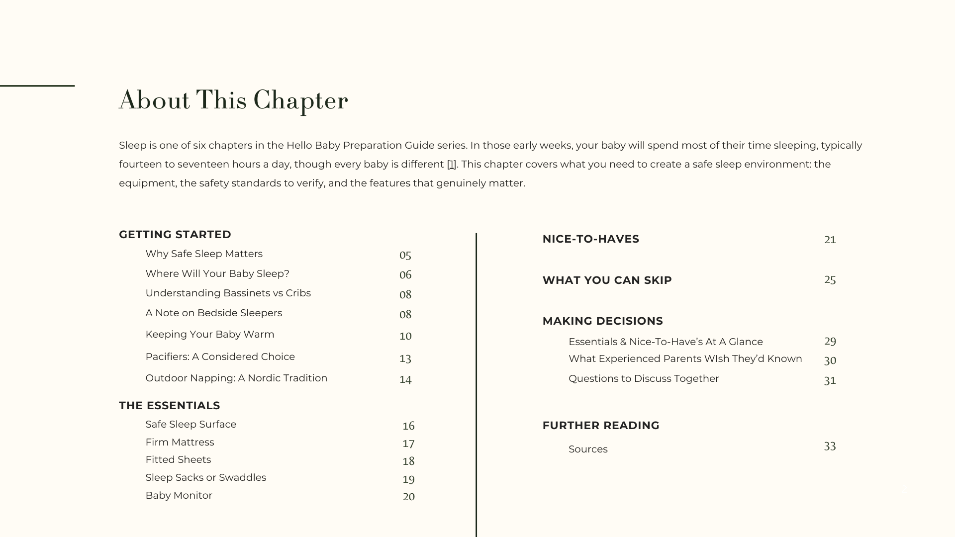 32 pages of evidence-based guidance for setting up baby's sleep space, designed for both of you.