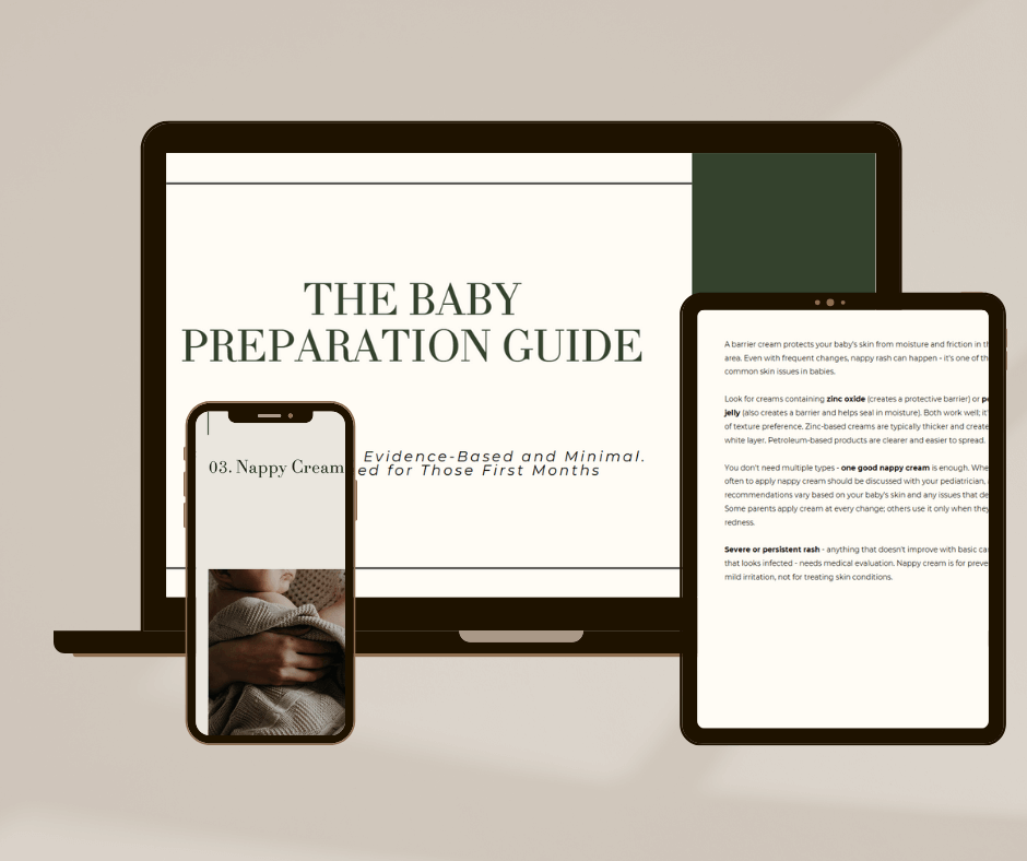 We organised newborn essentials into six areas so you can tackle preparation one topic at a time. Each chapter covers what you genuinely need, what most families skip, and the features worth paying attention to when you are shopping. In each chapter you also find questions you can discuss together to feel ready for what’s to come. Get the complete guide